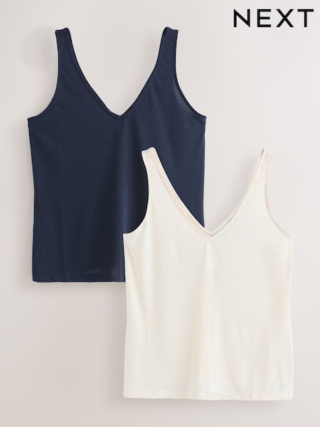 Pink/Cream Strappy Scoop Neck Slouch Ribbed Vests 2 Pack