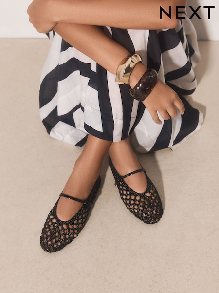 Black Forever Comfort® Flower Weave Maryjane Shoes