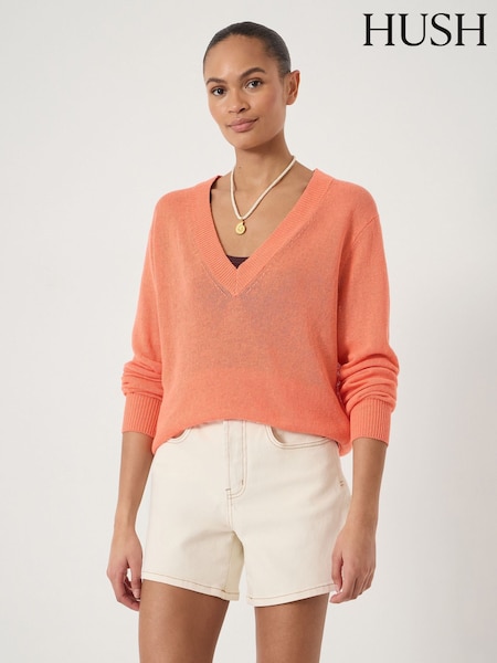 Hush Orange Coralie Linen Blend V-Neck Jumper