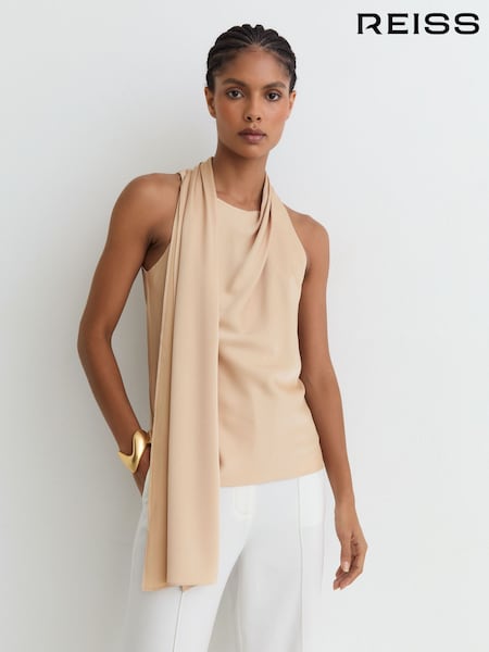 Reiss Neutral Taylor Draped Scarf-Detail Sleeveless Top