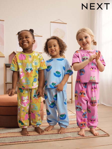 Pink/Blue Cat/Floral Jogger Pyjamas 3 Pack (9mths-10yrs)