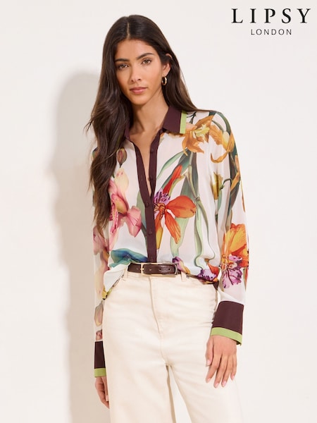 Lipsy Chiffon Cream Floral Chiffon Printed Shirt