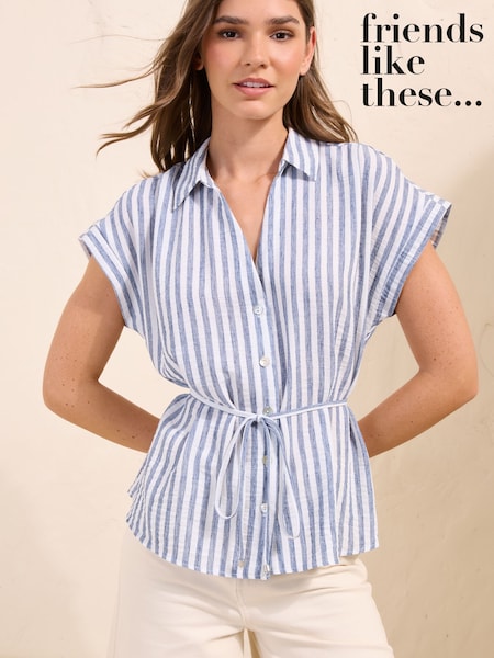 Friends Like These Blue Stripe Short Sleeve Tie Waist Shirt