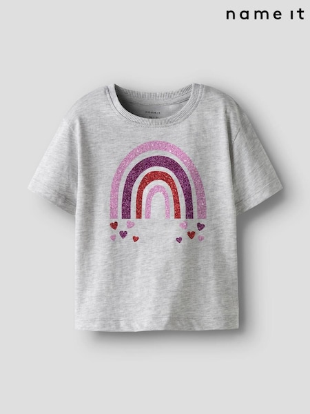 Name It Grey Glitter Rainbow Short Sleeve T-Shirt