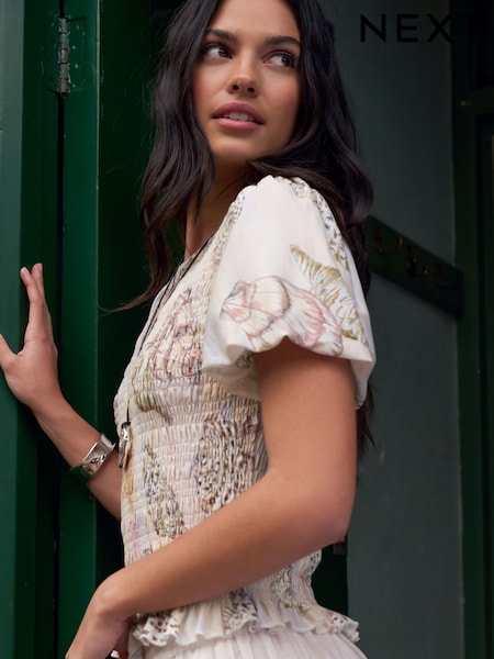 National Trust Pink Shell Print Shirred Short Sleeve T-Shirt