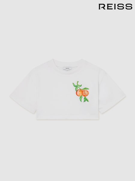 Reiss White Bertie Cotton Embroidered Cropped T-Shirt