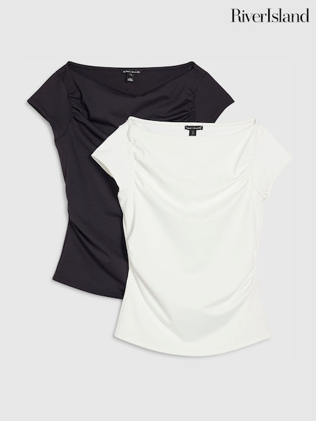 River Island Black Short Sleeve Ruched Nylon T-Shirt 2 Pack