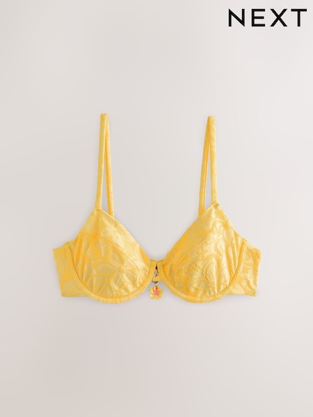 Yellow Floral Jacquard Non Padded Underwired Bikini Top