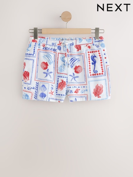 White Postcard Print Drawstring Mini Shorts