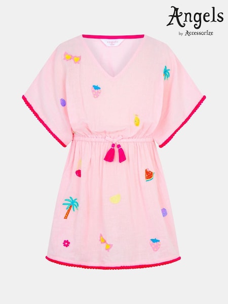 Angels By Accessorize Pink Fruit Embroidered Cotton Kaftan
