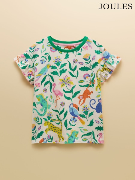 Joules Girls' Waverley Cream Frill Sleeve T-Shirt
