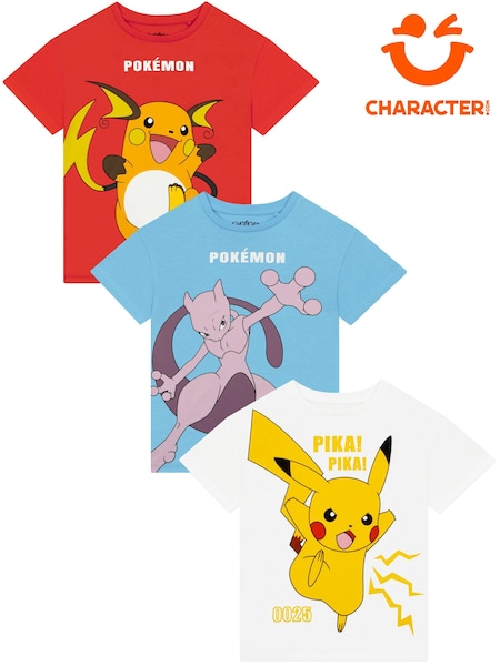Character Blue Pokemon T-Shirts 3 Pack Pikachu, Raichu And Mewtwo