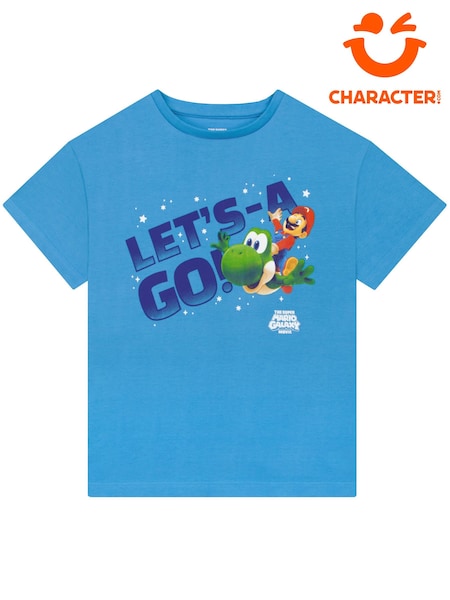 Character Blue Super Mario Galaxy T-Shirt Mario And Yoshi