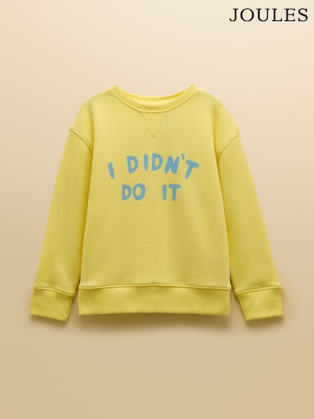 Joules Kids' Sundaze Yellow Slogan Crew Neck Sweatshirt