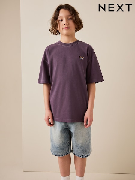 Berry Purple Washed Chest Embroidery T-Shirt (3-16yrs)
