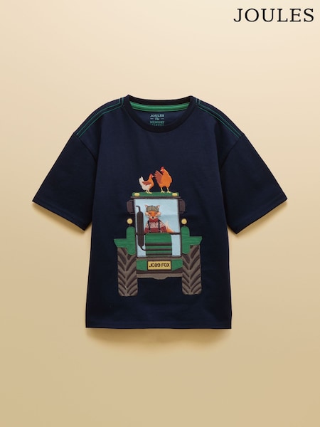 Joules Boys' Archie Navy Applique Graphic T-Shirt