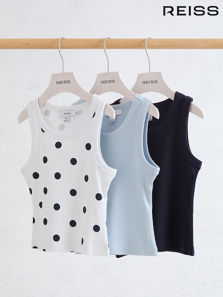 Reiss White/Pink/Navy Violet 9-13 yrs 3 Pack Stretch-Cotton Ribbed Vests