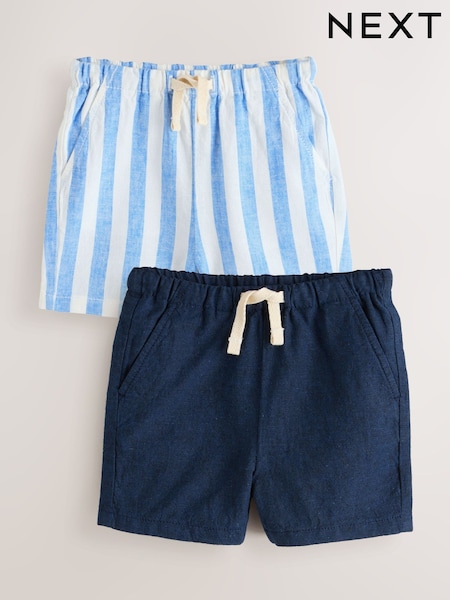 Navy/Blue Stripe Linen Blend Shorts 2 Pack (3mths-7yrs)