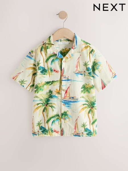 Ecru Boat All Over Print Short Sleeve Revere Collar Shirt (3-16yrs)