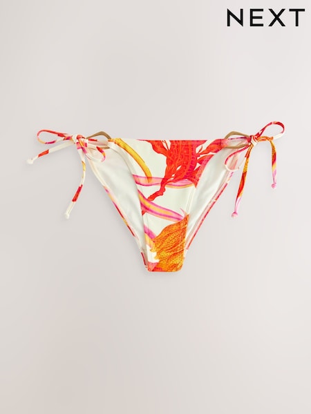 Kew Collection Cream/Red Floral Tie Side Hardware Tie Side Bikini Bottoms