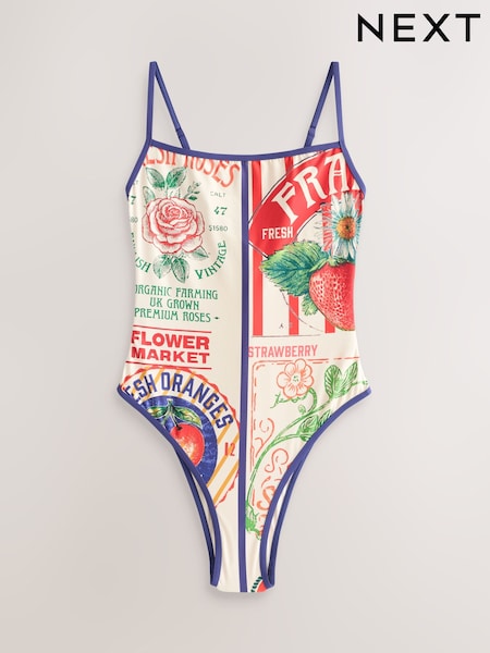 Blue/White Square Neck Swimsuit