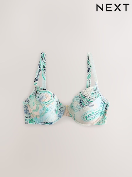 Cream/Green Leaf Embroidered Triangle Bikini Top