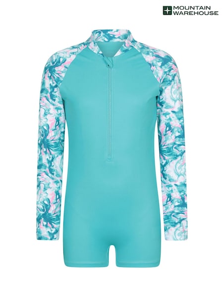 Mountain Warehouse Blue Mira Long Sleeve Kids Rash Shorty Swimsuit