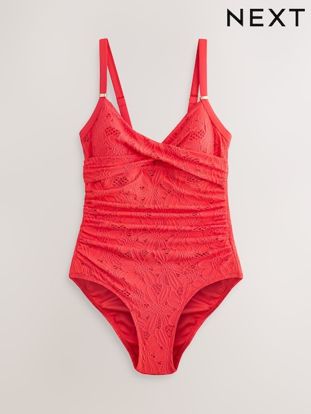 Red Broderie Shaping Tummy Control Swimsuit