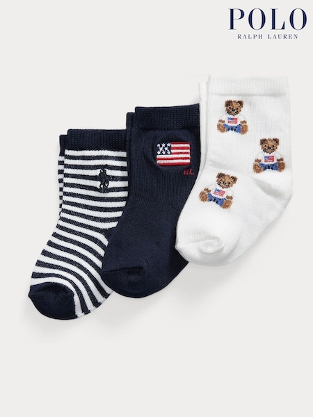 Polo Ralph Lauren White Polo Bear Flag Stripe Socks 3 Pack