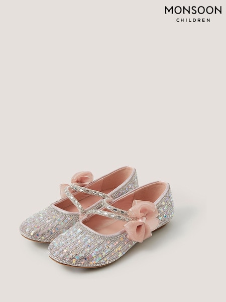 Monsoon Pink Embellished Bow Strap Ballet Flats