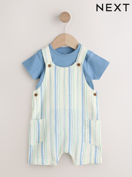 Blue Stripe Woven Dungaree and Bodysuit Set (0mths-2yrs)
