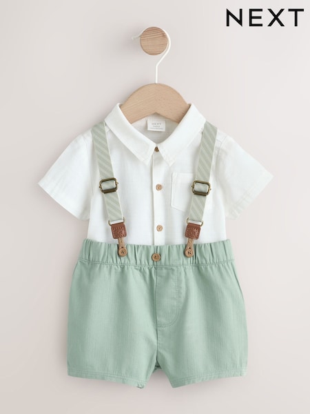 Sage Green Shirt Body Shorts and Braces Baby Set 3 Piece (0mths-2yrs)