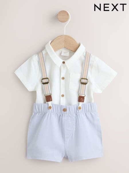 Blue Shirt Body Shorts and Braces Baby Set 3 Piece (0mths-2yrs)