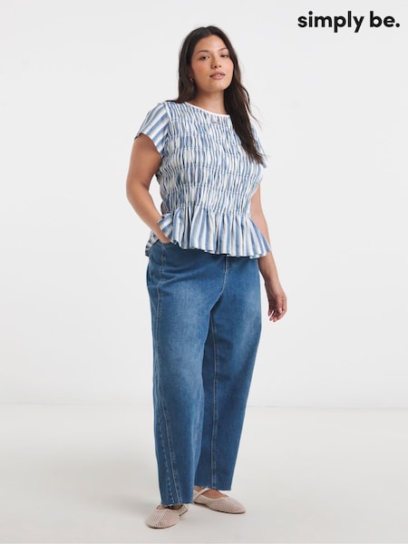 Simply Be Blue Shirred Peplum Top