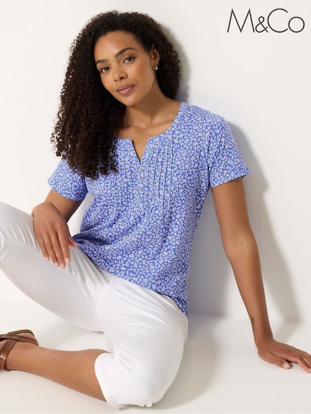 M&Co Blue Cotton Henley Top
