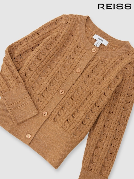 Reiss Bronze Fae Cotton And Wool Blend Pointelle Cardigan