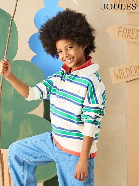 Joules Boys' Green & White Striped Sweatshirt with Collar
