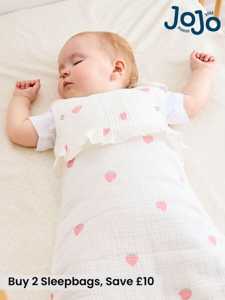 JoJo Maman Bébé White Strawberry Print Muslin Sleep Bag