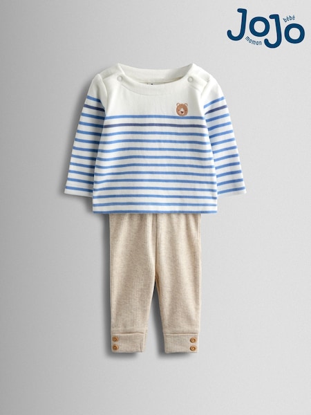 JoJo Maman Bébé Cream Bear Stripe Top and Legging Set