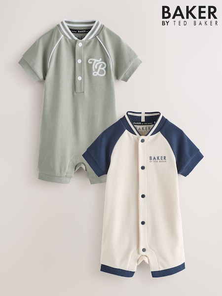 Baker by Ted Baker Blue/Stone Varsity Rompers 2 Pack