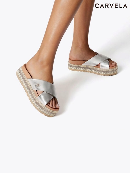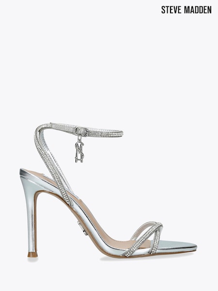 Silver Forever Comfort® Square Toe Jewelled Strappy Block Heeled Sandals