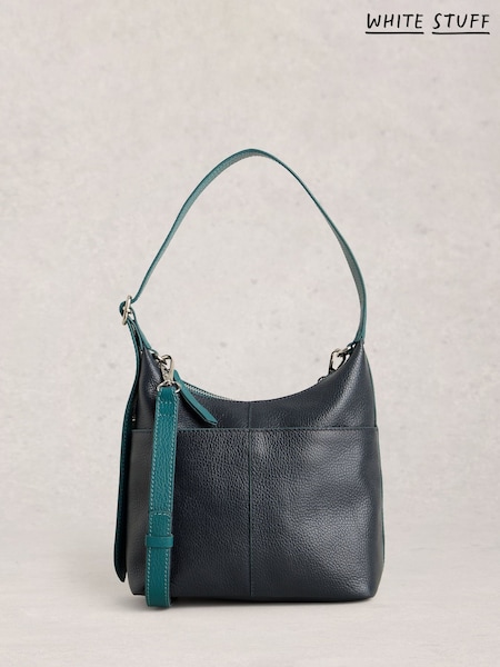 White Stuff Navy Mini Fern Leather Cross-Body Bag