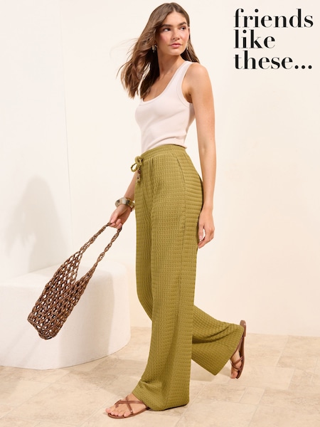 Friends Like These Green Textured Tie waist Trousers