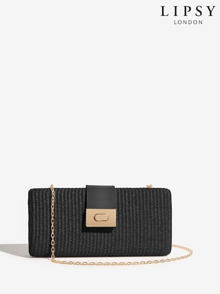 Lipsy Black Raffia Effect Clutch Bag