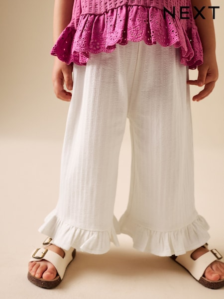 Ecru White Wide Leg Frill Trousers (3mths-7yrs)
