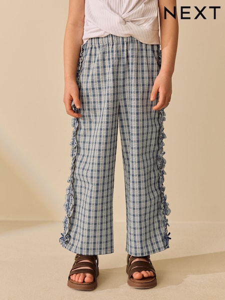 Navy/ White Check Pullon Wide Leg Trousers (3-16yrs)