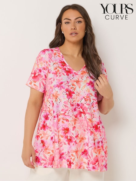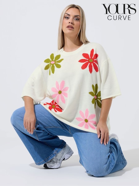 Yours Curve White Limited Floral Print T-Shirt