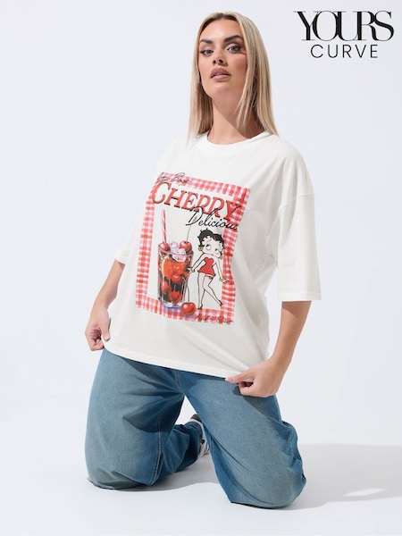 Yours Curve White Limited Summer Days Puff Ditsy T-Shirt
