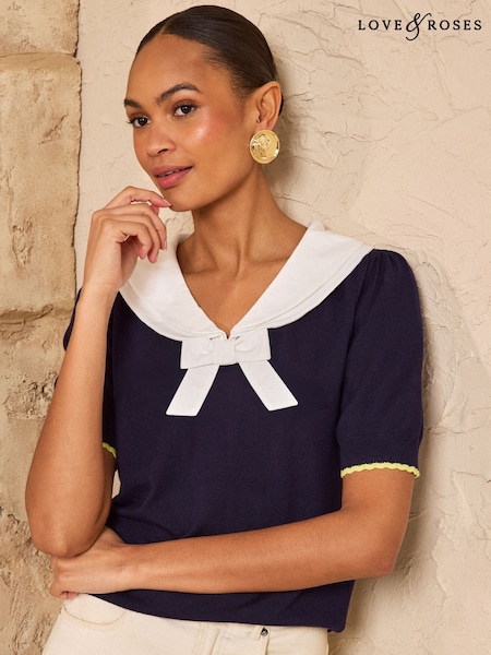 Love & Roses Navy Sailor Bow Knitted Top