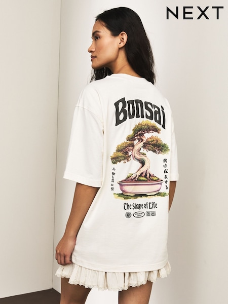 Ecru Bonsai Graphic Crew Neck Short Sleeve T-Shirt